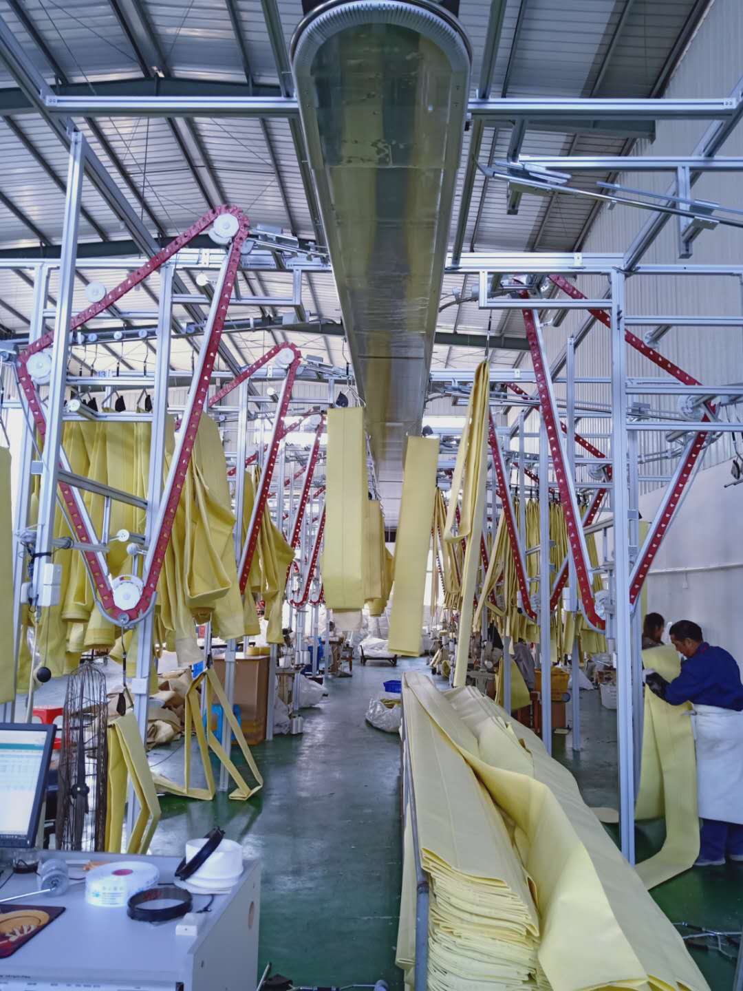 1、强氧化剂:例如PPS除尘布袋在160℃工作时,遇到氧含量超标时(>12),大量的氧能够攻击PPS分子中的S键并与之结合。反应的结果是:PPS纤维变为深色且变脆,强度降低。有时你会发现,暴露于阳光下的PPS纤维布袋表面颜色会变成咖啡色。如果长期运行不予处理,易造成纤维强力下降,导致除尘布袋因强力下降而破损。空气中含有21的氧气和79的氮气(体积比)。在温度不高时,氮气很稳定,但是高温会使氮分子链断裂并与氧气反应形成NO和NO2,NO可以不过多考虑,但NO2是很强的氧化剂并且能氧化大多数用于过滤的纤维。氧化剂有氮氧化物、硫化氢、氨、氯等。在工艺和设备上加强控制可以减少氧化腐蚀。